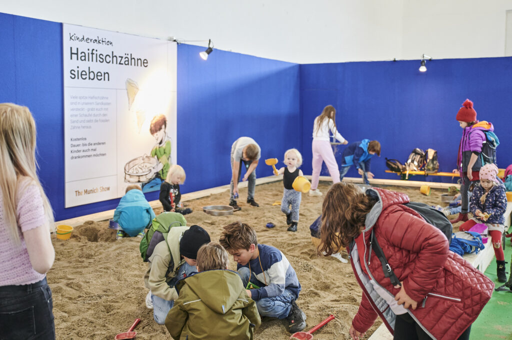 Aus diesem Grund werden fossile Haifischzähne relativ häufig gefunden. Auf der Munich Show können Kinder selbst auf die Suche gehen: Mit Schaufel und Sieb im großen Sandkasten lässt sich spielerisch ausprobieren, wie spannend paläontologische Entdeckungen sein können. Ein kleines Abenteuer für junge Fossilienforscher.