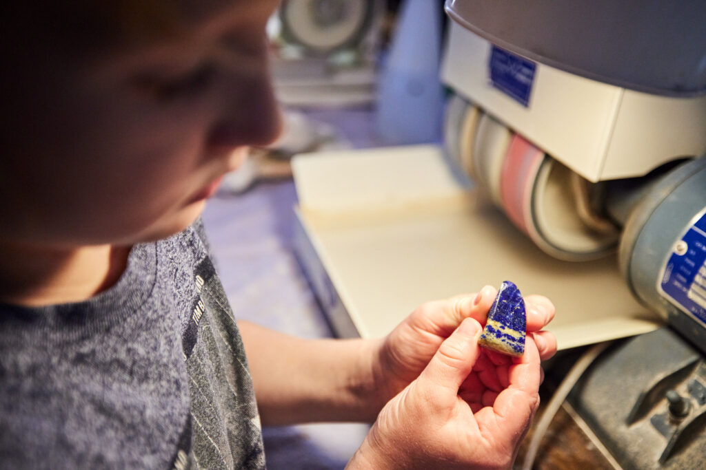 Aus einer großen Auswahl an Edelsteinen – wie Lapislazuli, Rosenquarz, grüner Opal oder Bergkristall – darf ein Lieblingsstein ausgewählt werden. Jedes Kind entscheidet selbst, wie es seinen Stein zum Glänzen bringt. Ob per Hand, mit Schleifschwämmen oder an der Poliermaschine. Ein glänzendes Erinnerungsstück und ein kleiner Schatz zum Mitnehmen!