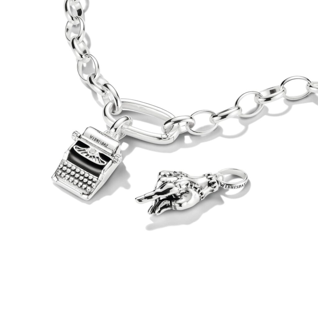 Die „Wednesday“ Charms entfalten ihre dunkle, elegante Aura durch geschwärzte Oberflächen sowie durch den Einsatz von schwarzem Emaille und funkelnde Highlights aus Zirkonia. Die Kollektion umfasst acht charakteristische Charms, von denen jeder seine eigene Geschichte erzählt: