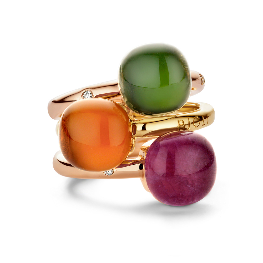 Links: Herbstfarben eingefangen durch Zirkon, im „Triple“ Ring von Richard Hans Becker. © Richard Hans Becker
