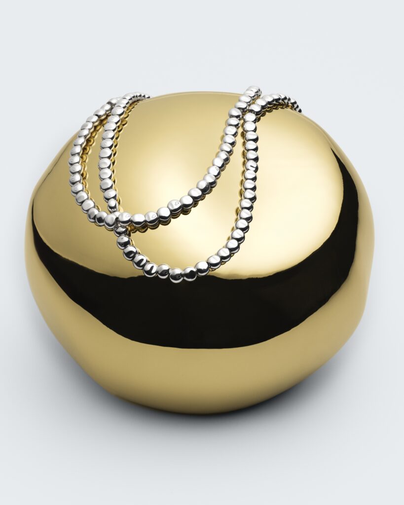 Für die Herbst/Winter-Saison 2025 kehrt DoDo zu seinen Wurzeln zurück und interpretiert das „Pepita“ Design neu. Das Design verbindet elegante Schlichtheit und Raffinesse, es steht für den unverwechselbaren Stil von DoDo. Das charakteristische Motiv im abgeflachten Kugeldesign gibt es nun in einer harmonischen Verbindung aus Titan, Silber und 9-karätigem Roségold.