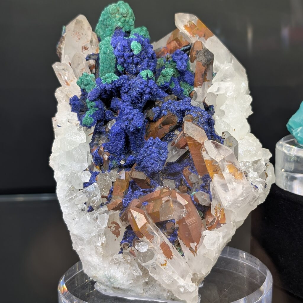 Ein Kunstwerk, von der Erde geformt: Malachit und Azurit in einem Quarzkristall – gefunden in Marokko, auf der Messe zu erwerben für die stolze Summe von 13.000 Euro. © Insight Luxury