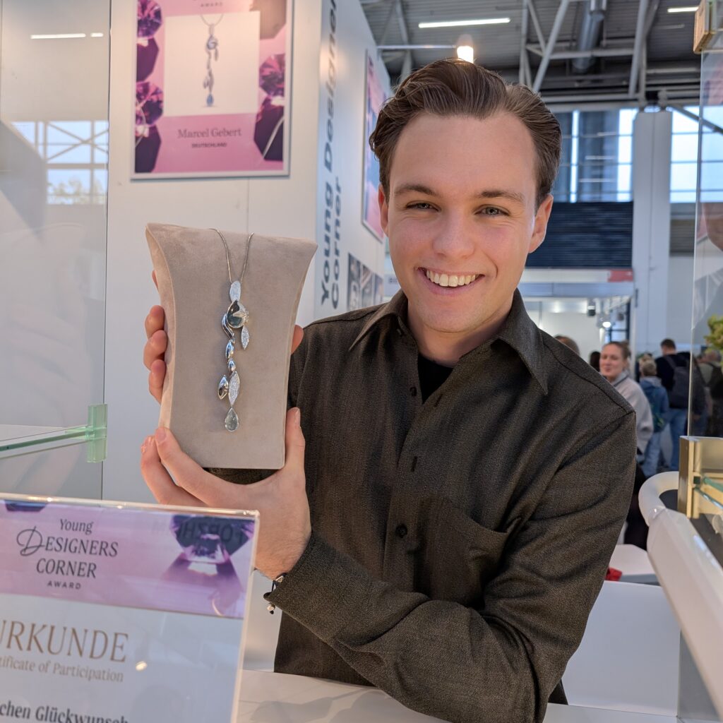 Gewinner des Young Designers Corner Award 2025: Marcel Gebert mit seiner preisgekrönten Schmuck-Kreation. © Insight Luxury