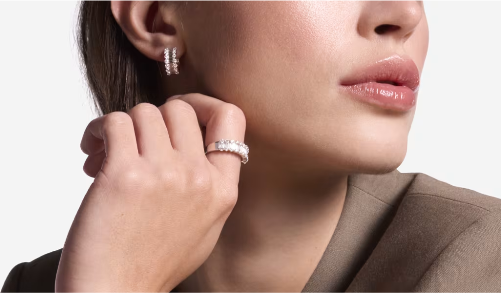 Während Ringe und Armschmuck Zurückhaltung üben, übernimmt der Ohrschmuck 2026 die Hauptrolle. Große, ausdrucksstarke Modelle werden wieder paarweise getragen und ziehen bewusst Aufmerksamkeit auf sich. Sie ranken sich entlang des Ohrs, vermeiden schwere Hängeoptiken und werden oft durch Clipse oder innovative Konstruktionen unterstützt.