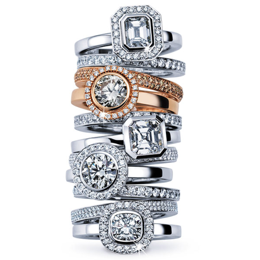 Oben: Noor – Exclusive Ringe, Richard Hans Becker – Creolen, Schaffrath – Paradoxal Ringe. Unten: Noor -Colorbliss Ringe, Leo Wittwer – Ultimate Ringe.