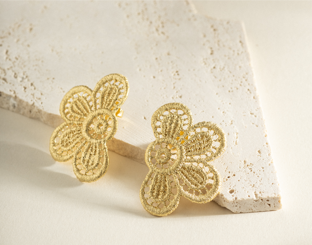 Mit Blooming Lace interpretiert Brigitte Adolph florale Formen auf ausdrucksstarke Weise. Die großzügigen, dreivierteloffenen Blüten schmiegen sich sanft an die Wange und entfalten ihre feine, spitzenartige Struktur. Trotz ihrer Größe wirken die Ohrringe überraschend leicht und verspielt – ein lebendiges Statement voller Charme, Eleganz und femininer Freude.