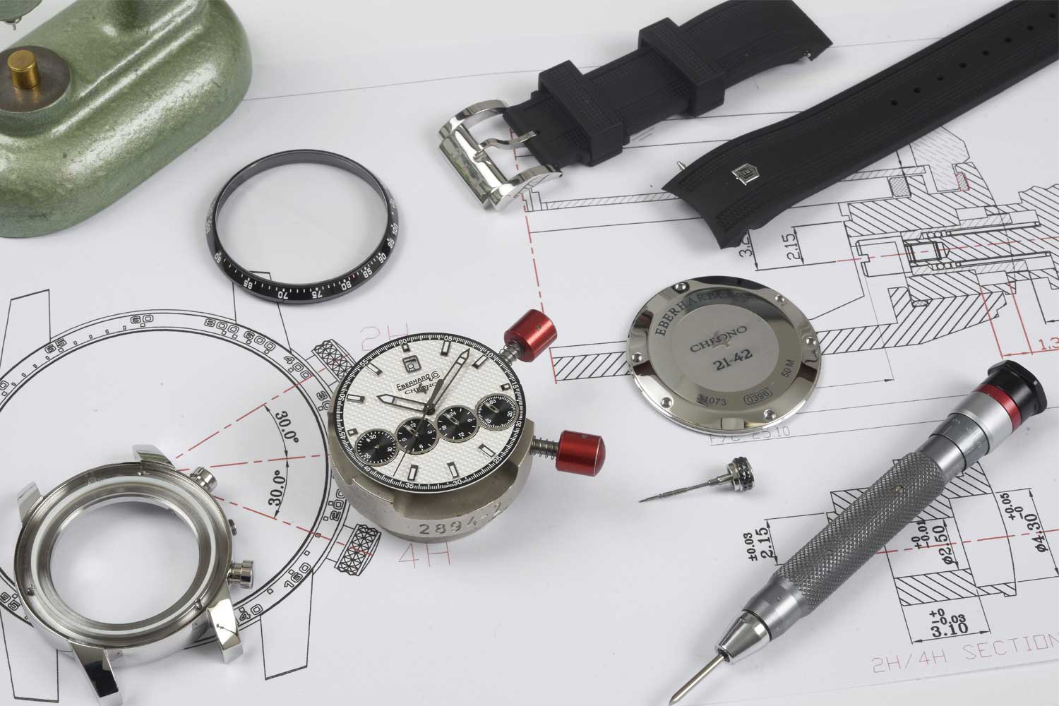 Sein Ziel bei der Entwicklung des „Chrono 4“ von Eberhard & Co. war es, eine technische Lösung für ein möglichst intuitives, logisches Ablesen der Chronographenzähler zu finden, die bis dahin standardmäßig auf zwei oder drei Zifferblättern bei 12, 3 und 9 Uhr angeordnet waren.