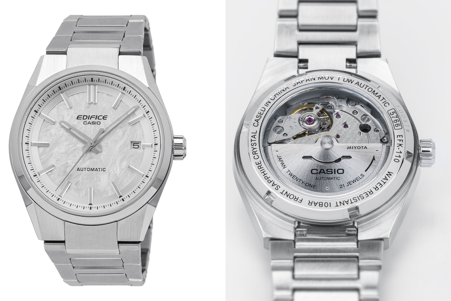 Zifferblatt: Weiß in Karbonoptik Materialien: Edelstahl, Saphirglas, Mineralglas Uhrwerk: Miyota, Automatik Gangreserve: 42 Stunden Gehäusemaße: 38 x 11,8 mm Wasserdichtigkeit: 10 bar Armband: Edelstahl Besonderheiten: transparenter Gehäuseboden UVP: 279 €