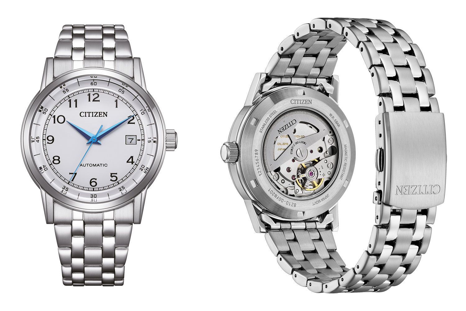Zifferblatt: Off-White, satiniert Materialien: Edelstahl, Saphirglas Uhrwerk: Miyota 8205, Automatik Gangreserve: 40 Stunden Gehäusemaße: 38 x 12 mm Wasserdichtigkeit: 5 bar Armband: Leder o. Milanaise mit Schnellwechselsystem Besonderheiten: Glasboden UVP: 449 €