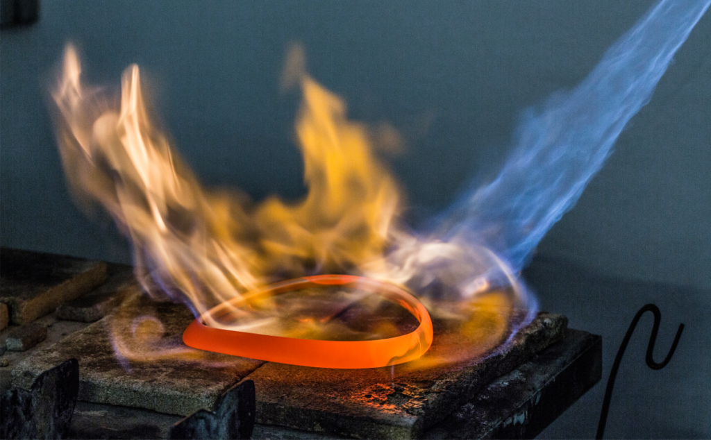 Die Colliers und Armreifen lassen sich durch eine leichte Drehbewegung öffnen und schließen – ohne Scharniere, Federn oder zusätzliche Materialien. Stattdessen entsteht die Beweglichkeit allein durch eine nahezu unsichtbare, von Hand eingearbeitete Öffnung im Inneren des Schmuckstücks.