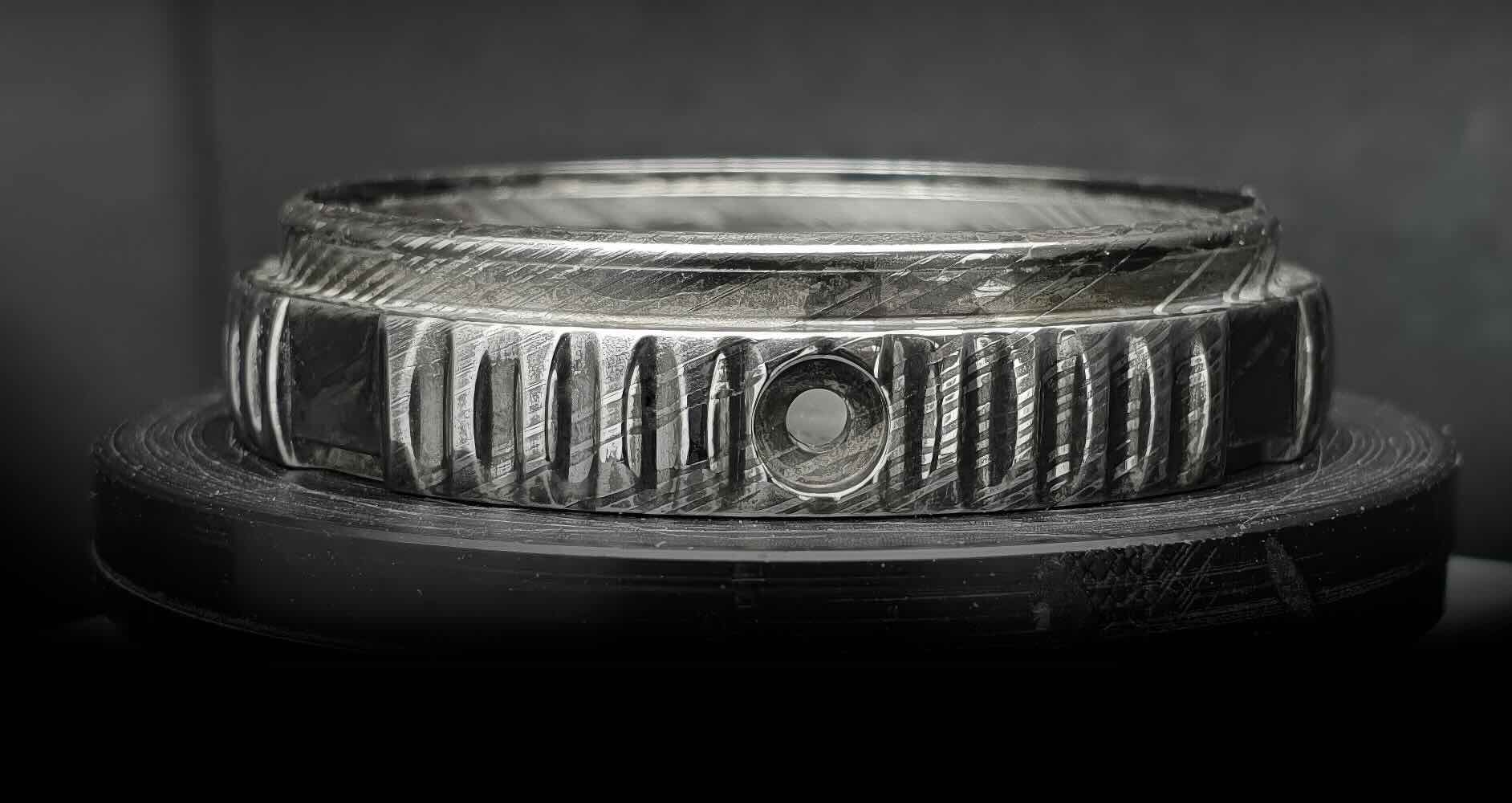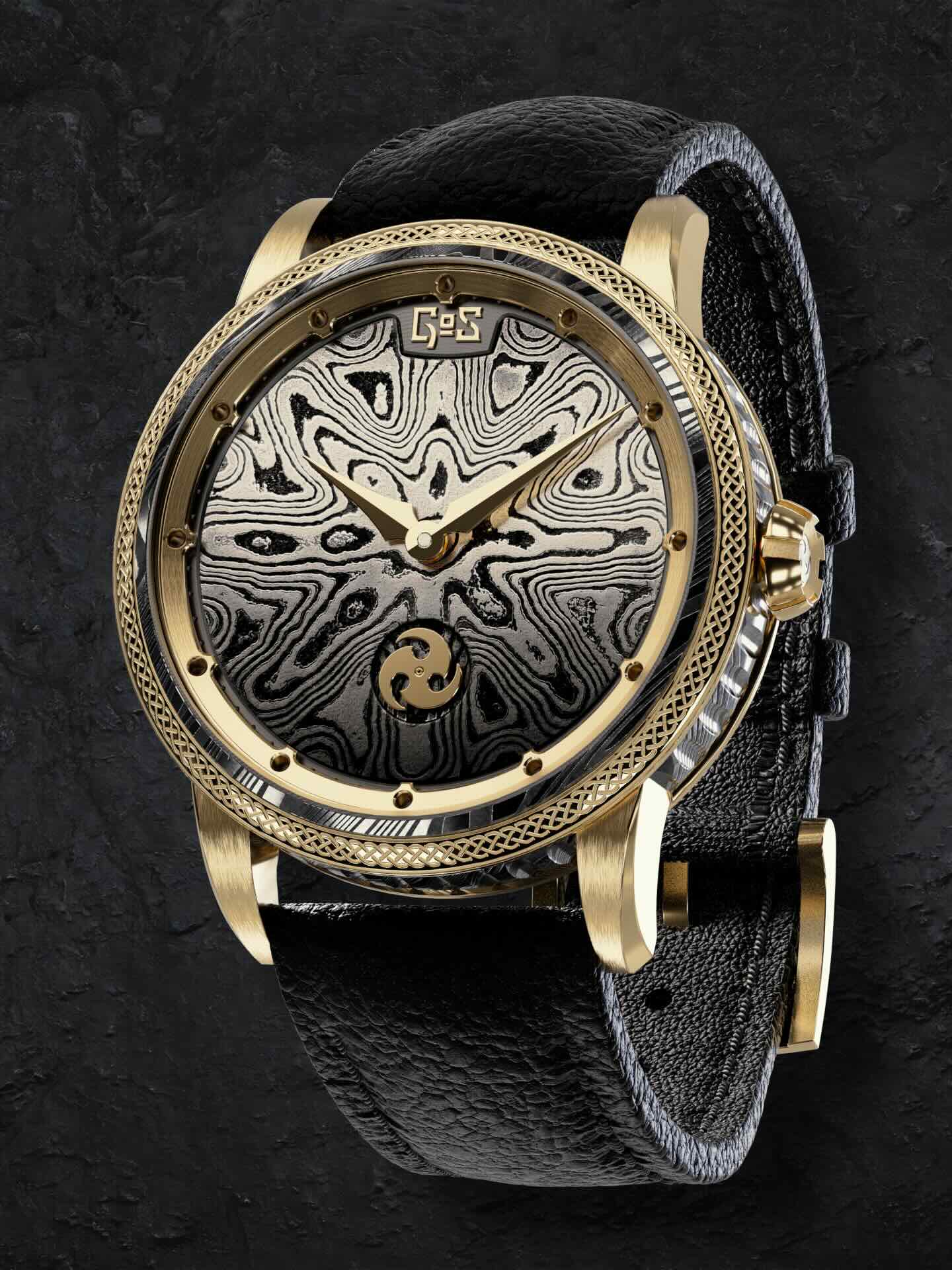 Das erste Beispiel ist die kleine schwedische Marke GoS Watches, die statt neuer Werkstoffe eine uralte Schmiedetechnik zum Einsatz bringt. In jedem Modell wird Damaszenerstahl verwendet, der ihm mit seinen organischen Strukturen einen je eigenen Reiz verleiht. Die Marke bezieht sich gern auf ästhetische Wikinger-Traditionen, jedoch sind die Uhren keines Wegs so martialisch, wie das vermuten ließe, sondern entwickeln im geschickten Einsatz unterschiedlicher Farben eine eher an Nordlichter erinnernde Eleganz.
