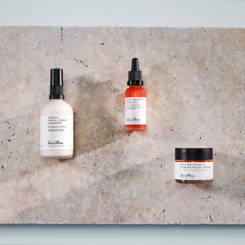 Der Respekt vor der Natur und der Wunsch, sie zu erhalten, lässt sich bei hochwertigen und nachhaltigen Produkten auf vielfältige Weise leben: Less is More bietet naturnahe Kosmetik mit hochwertigen Inhaltsstoffen, die alle biozertifiziert sind und ohne Tierversuche getestet wurden. Die Wirkstoffkosmetik besteht aus alpinen Pflanzenauszügen und naturreinen Essenzen, die gemeinsam von der Chemikerin und Aromatherapeutin Dr. Doris Brandhuber sowie dem Hairstylisten und Trainer Hannes Trummer entwickelt wurden.