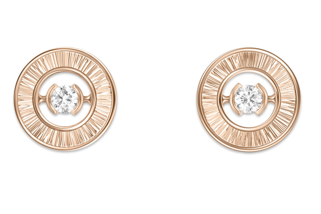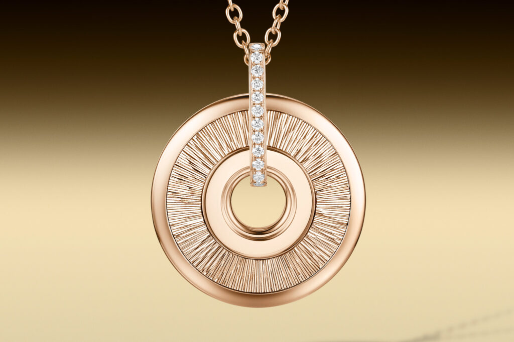 The engraving technique is inspired by the guilloché technique in watchmaking and is created by hand using the sharp tip of an etching needle.