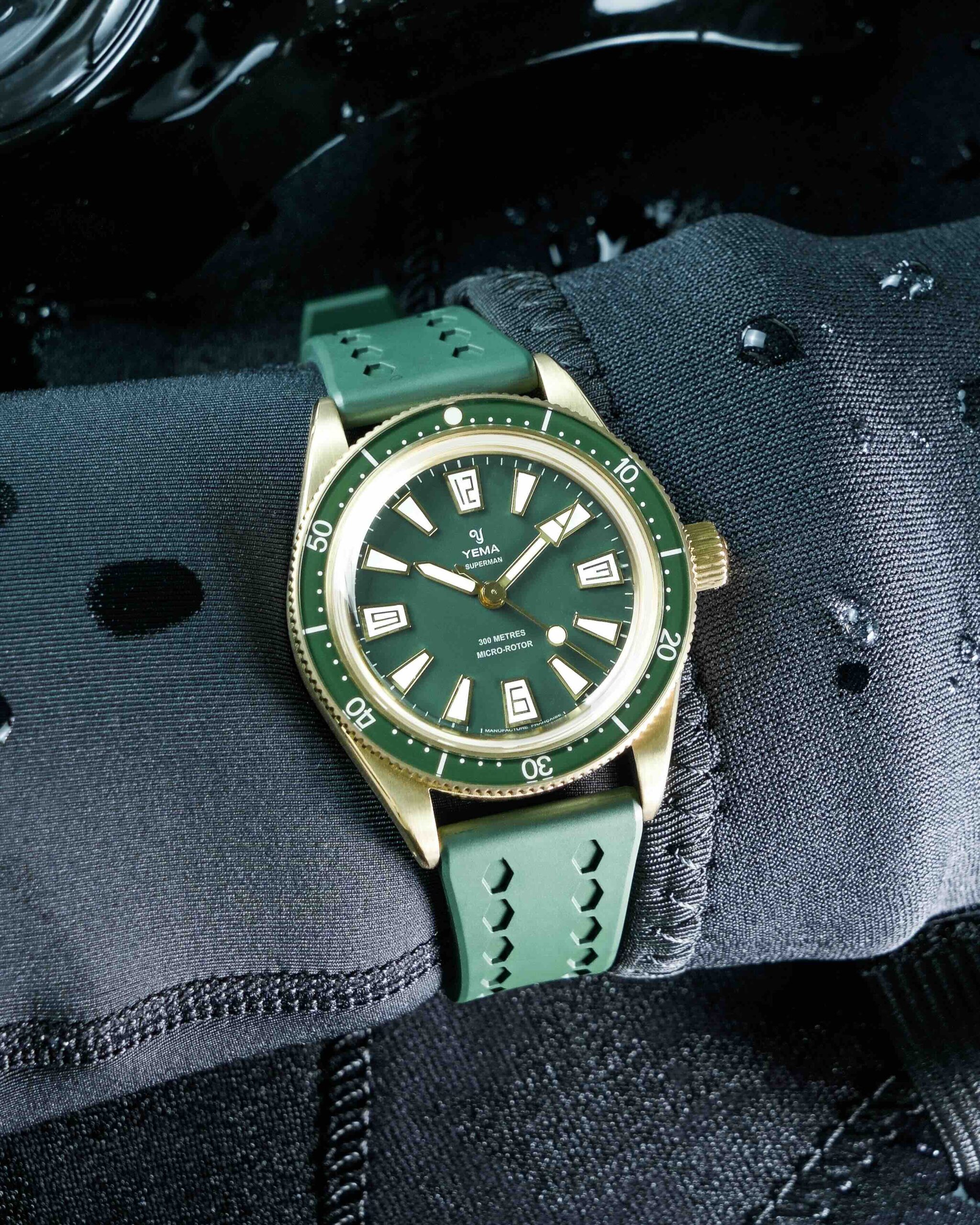 The Skin Diver is one of YEMA's most iconic models, representing functional diving watches with a clean, modern design since the 1960s. This heritage is reinterpreted in the current slim version: more compact, thinner, and significantly enhanced technically. Limited to 200 pieces, this model combines a 39mm bronze case with contemporary proportions, excellent everyday wearability, and robust water resistance to 30 bar.